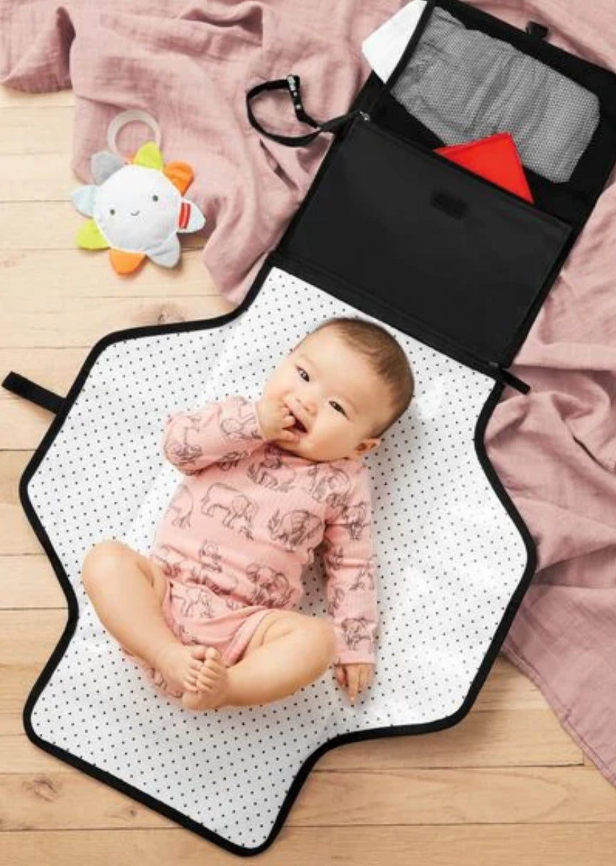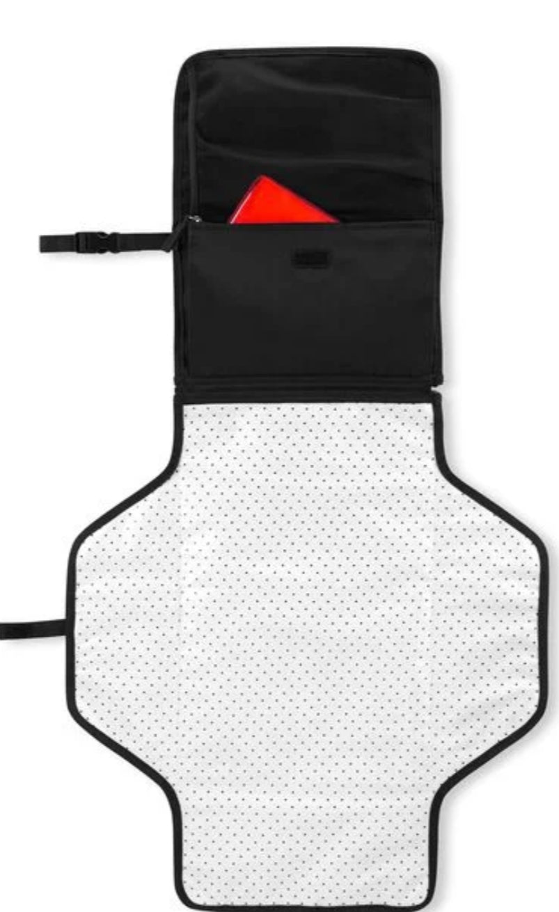 The Pronto Signature Changing Station is a sleek, portable diaper changing kit designed to keep parents prepared while on the go. It features a built-in, extra-wide cushioned changing pad that wipes clean easily and can be detached when needed. The compact clutch design includes a front zip pocket for personal items, an inner mesh pocket for diapers, and a wipes case for quick access. Lightweight yet durable, the Pronto slips easily into a diaper bag or can be carried on its own by the wrist strap. Perfect for quick trips, errands, or travel, it ensures your baby always has a clean and comfortable place for diaper changes anytime, anywhere.
